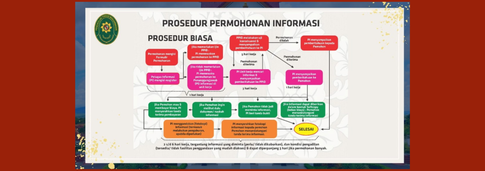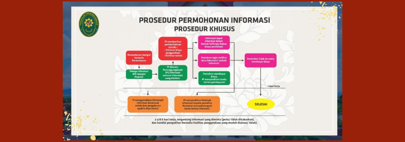 Ketua Mahkamah Agung RI pada tanggal 30 Agustus 2022 telah menerbitkan Surat Keputusan Nomor2-144/KMA/SK/VIII/2022 tentang Standar Pelayanan Informasi Publik di Pengadilan untuk memudahkan Anda mengakses informasi di PengadilanSelengkapnya