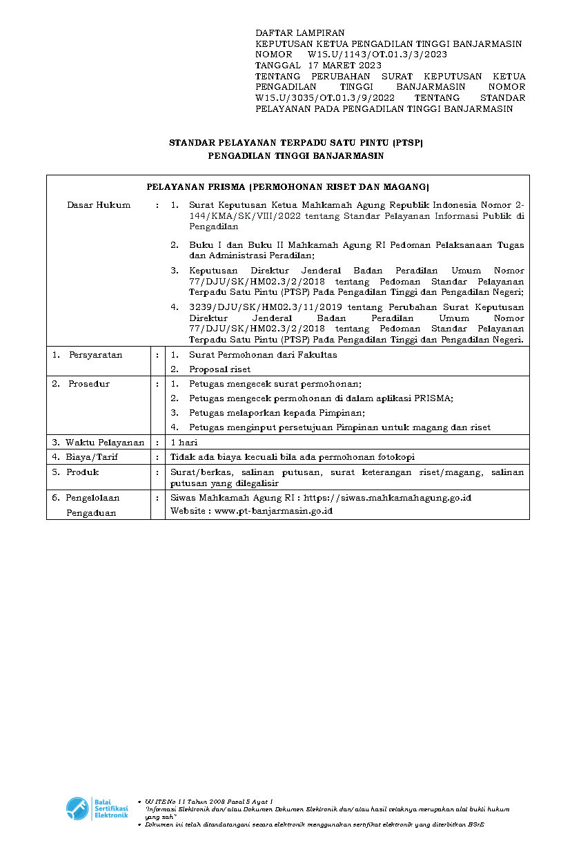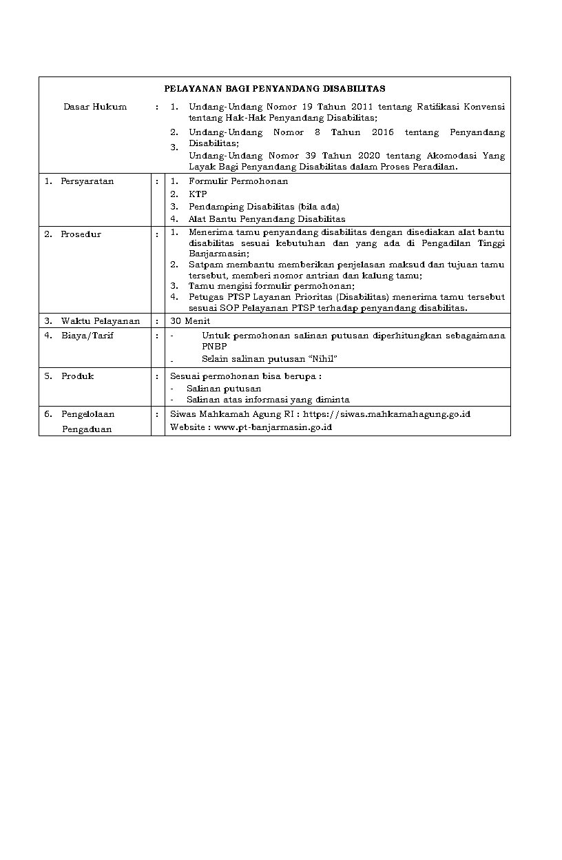 Mahkamah Agung RI pada tanggal 9 Januari 2014 telah menerbitkan Peraturan Mahkamah Agung Republik Indonesia Nomor 1 Tahun 2014 tentang Pedoman Pemberian Layanan Hukum Bagi Masyarakat Tidak Mampu di Pengadilan Tinggi BanjarmasinSelengkapnya